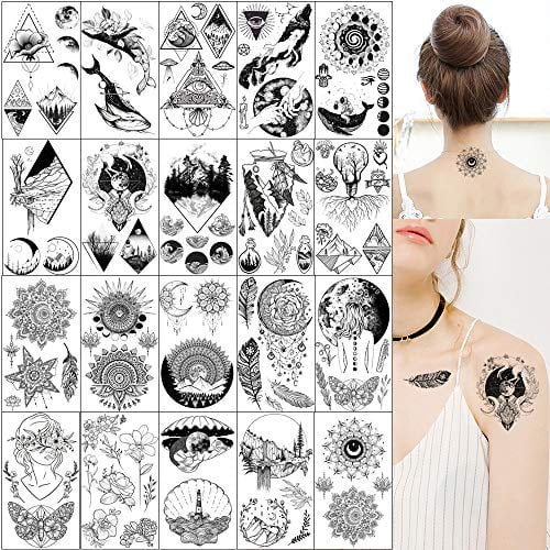 20 Sheets Black Tiny Temporary Tattoo Hands Face Tattoos Sticker For Men Women Forest Mountain Designs Body Art On Arm Neck Shoulder Clavicle Waterproof Walmart Com